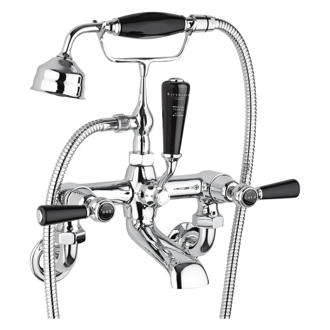 Bayswater Black Wall Mounted Bath Shower Mixer with Lever & Dome Collar