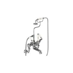 Consists of 1 x Wall mounting unions (for Bath Shower Mixer & Bath Filler, 3/4) (T17-2), 1 x Regent large pair of tap bases (for bath taps, bath shower mixers & bath fillers ā pair) (T4A), 1 x Quarter turn angled bath shower mixer (Including the standard cradle, āSā adjuster, Claremont, Anglesey & Birkenhead divertor handle, hose, ceramic telephone handset , excluding tap heads, base and unions) (T9-QT), 1 x Kensington tap handles (pair) ā chrome & medici (T4 MED), 1 x Medici shower handset (ME11-1) and 1 x Medici diverter handle of BSM (ME10)