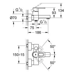 Bayswater White Wall Mounted Bath Shower Mixer with Lever & Hex Collar