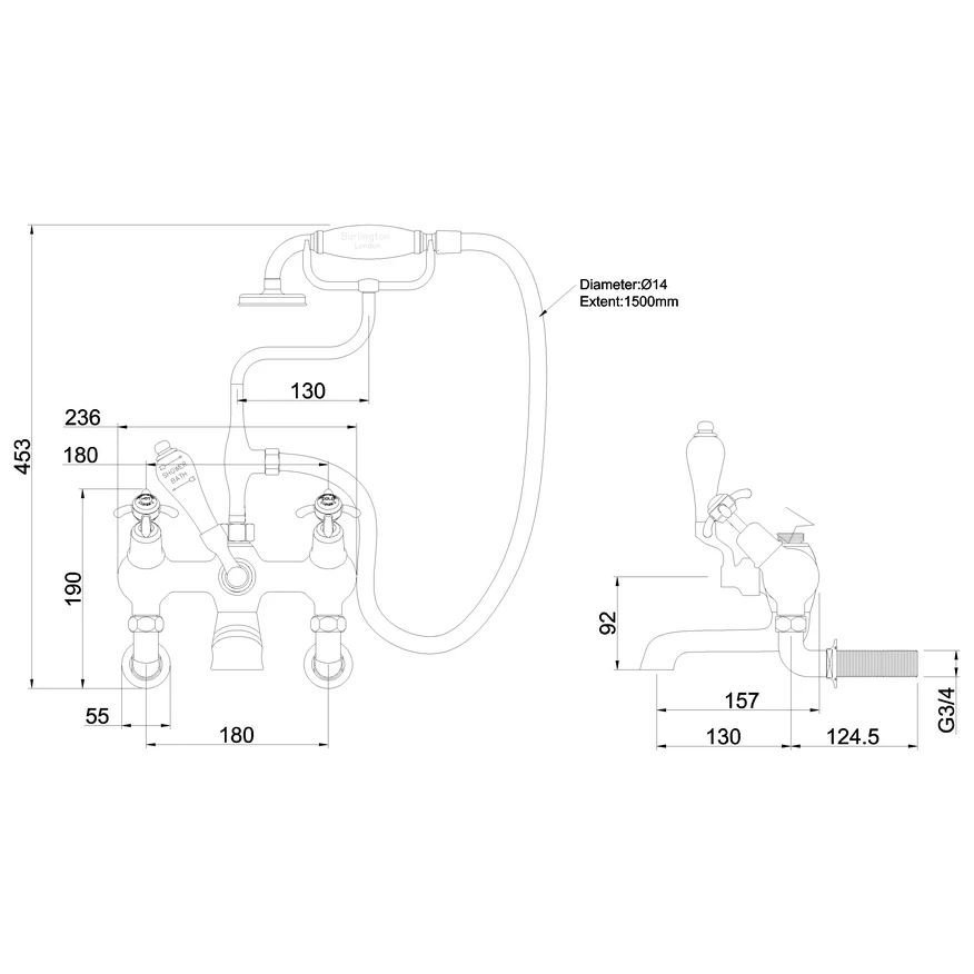 ā 1 x Angled bath shower mixer (Including the standard cradle, āSā adjuster, Claremont, Anglesey & Birkenhead divertor handle, hose, ceramic telephone handset , excluding tap heads, base and unions) (T9)