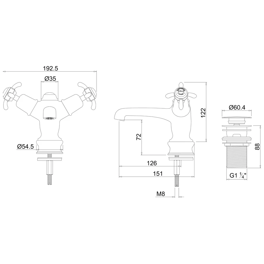 – 1 x Basin mixer, with pop up (excluding tap heads & base) (T12)