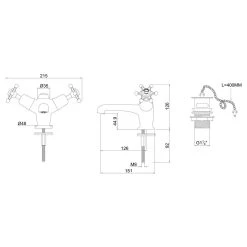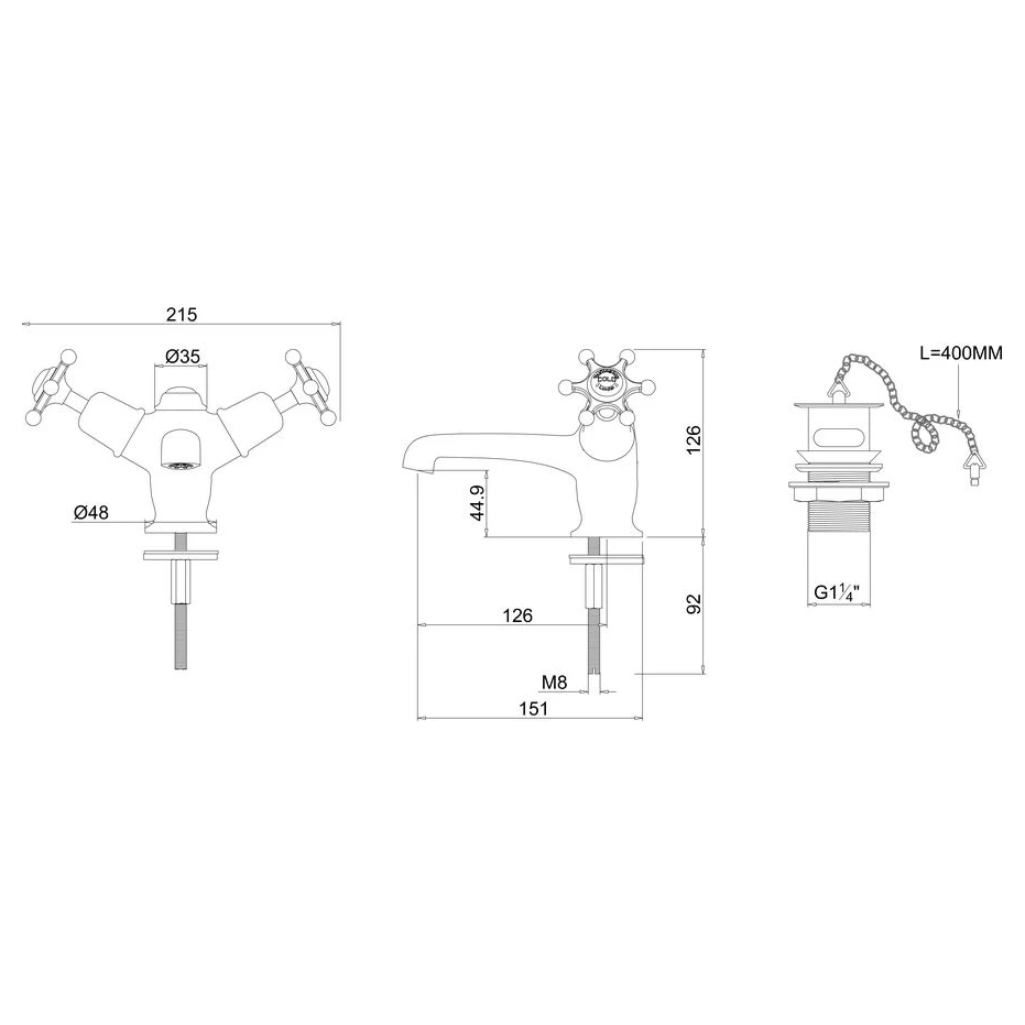 Consists of 1 x Basin mixer with plug & chain and 1 x Birkenhead tap handle (pair) (T3)