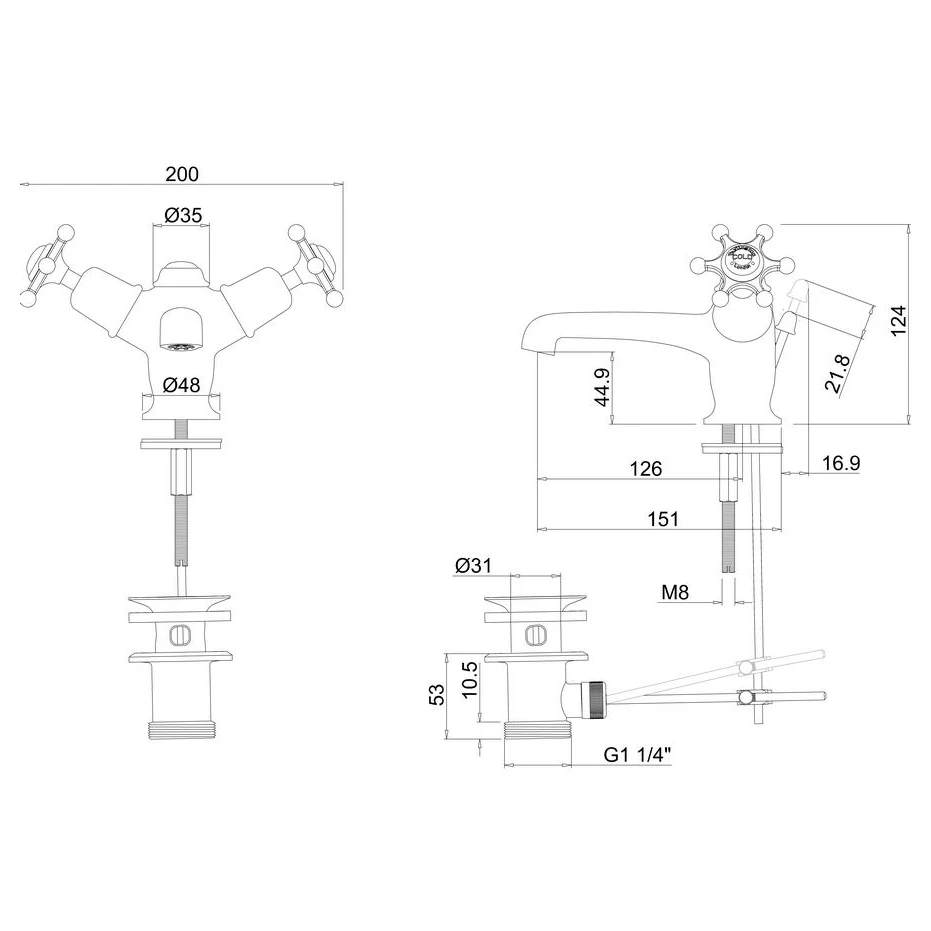 Consists of 1 x Basin mixer with pop up waste (T12) and 1 x Birkenhead tap handle (pair) (T3)
