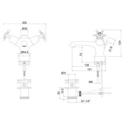 Consists of 1 x Basin mixer with pop up (T12), 1 x Birkenhead tap handle (pair) (T3) and 1 x Regent small single tap base