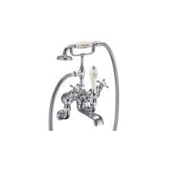 Consists of 1 x Angled bath shower mixer (Including the standard cradle, āSā adjuster, Claremont, Anglesey & Birkenhead divertor handle, hose, ceramic telephone handset , excluding tap heads, base and unions) (T9), 1 x Wall mounting unions (for Bath Shower Mixer & Bath Filler, 3/4) (T17-2), 1 x Claremont tap handles (pair) ā chrome & medici (T1 MED), 1 x Medici shower handset (ME11-1) and 1 x Medici diverter handle of BSM (ME10)