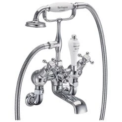 Consists of 1 x Angled bath shower mixer (Including the standard cradle, âSâ adjuster, Claremont, Anglesey & Birkenhead divertor handle, hose, ceramic telephone handset , excluding tap heads, base and unions) (T9), 1 x Wall mounting unions (for Bath Shower Mixer & Bath Filler, 3/4) (T17-2) and 1 x Claremont tap handles (pair) (T1)