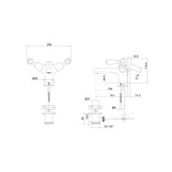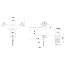 Consists of 1 x Bath pillar taps (excluding tap heads & base) (T7) and 1 x Claremont tap handles (pair) – chrome & medici (T1 MED)