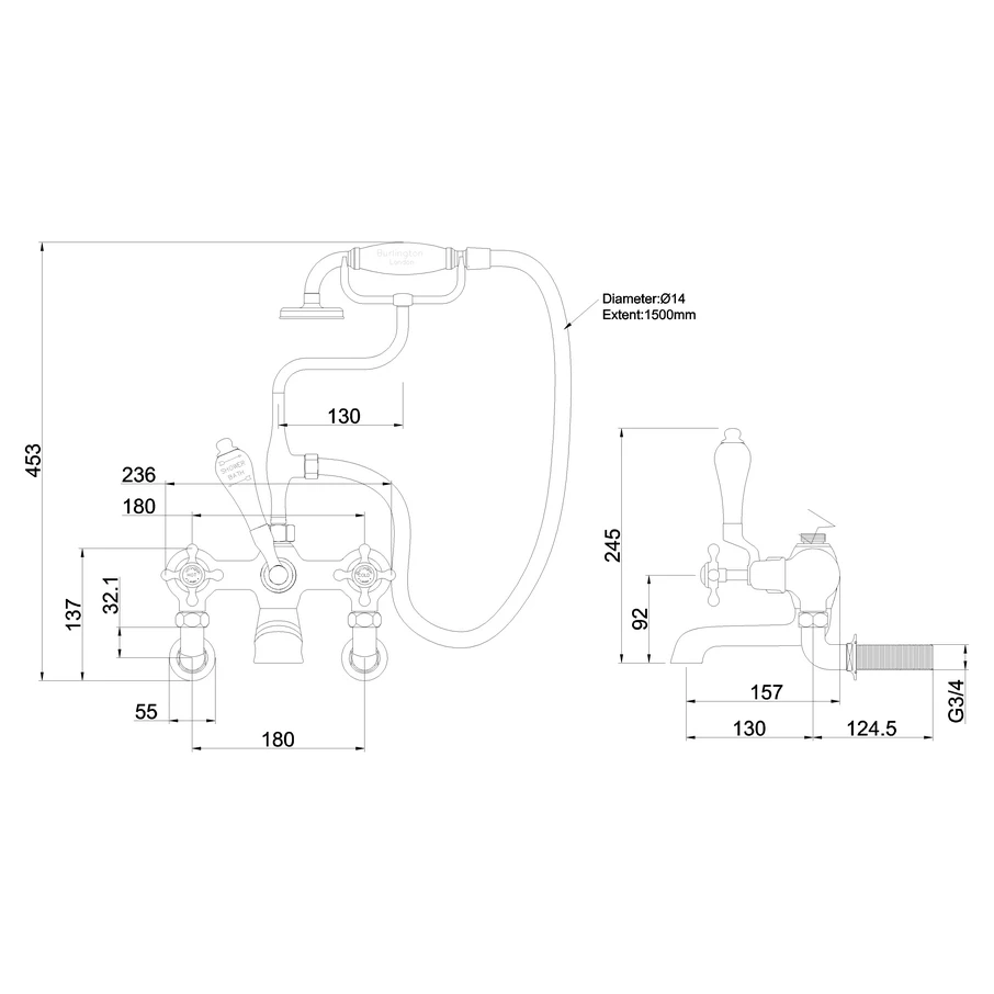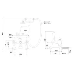 Consists of 1 x Bath shower mixer (Including the standard cradle, âSâ adjuster, ceramic diverter, hose, ceramic telephone handset, excluding tap heads, bases and unions) (T8), 1 x Wall mounting unions (for Bath Shower Mixer & Bath Filler, 3/4) (T17-2) and 1 x Claremont tap handles (pair) (T1)