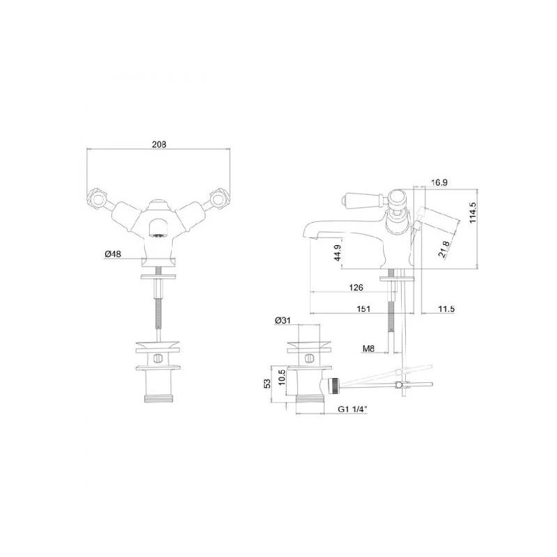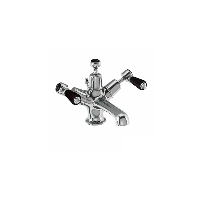 Consists of 1 x Quarter turn basin mixer, with pop up (excluding tap heads & base) (T12-QT), 1 x Kensington tap handles (pair) – chrome & black (T4 BLA) and 1 x Black B indice – 22mm (BX23)