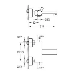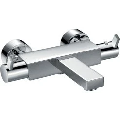 Str8 wall mounted thermostatic bath and shower mixer tap with handset and hose