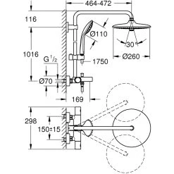 Euphoria System 260 Shower system with bath thermostat for wall mounting