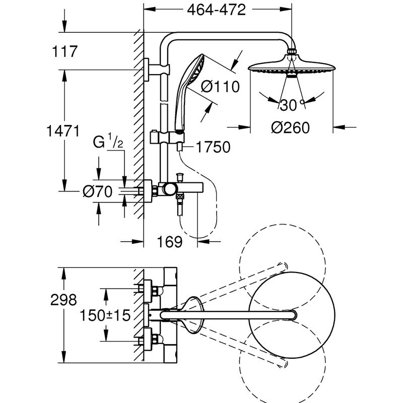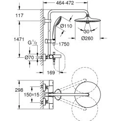 260mm head shower with three spray zones – Jet, SmartRain and Rain Spray