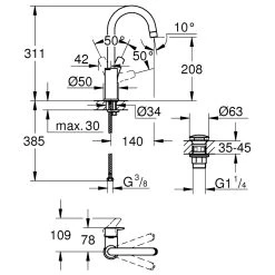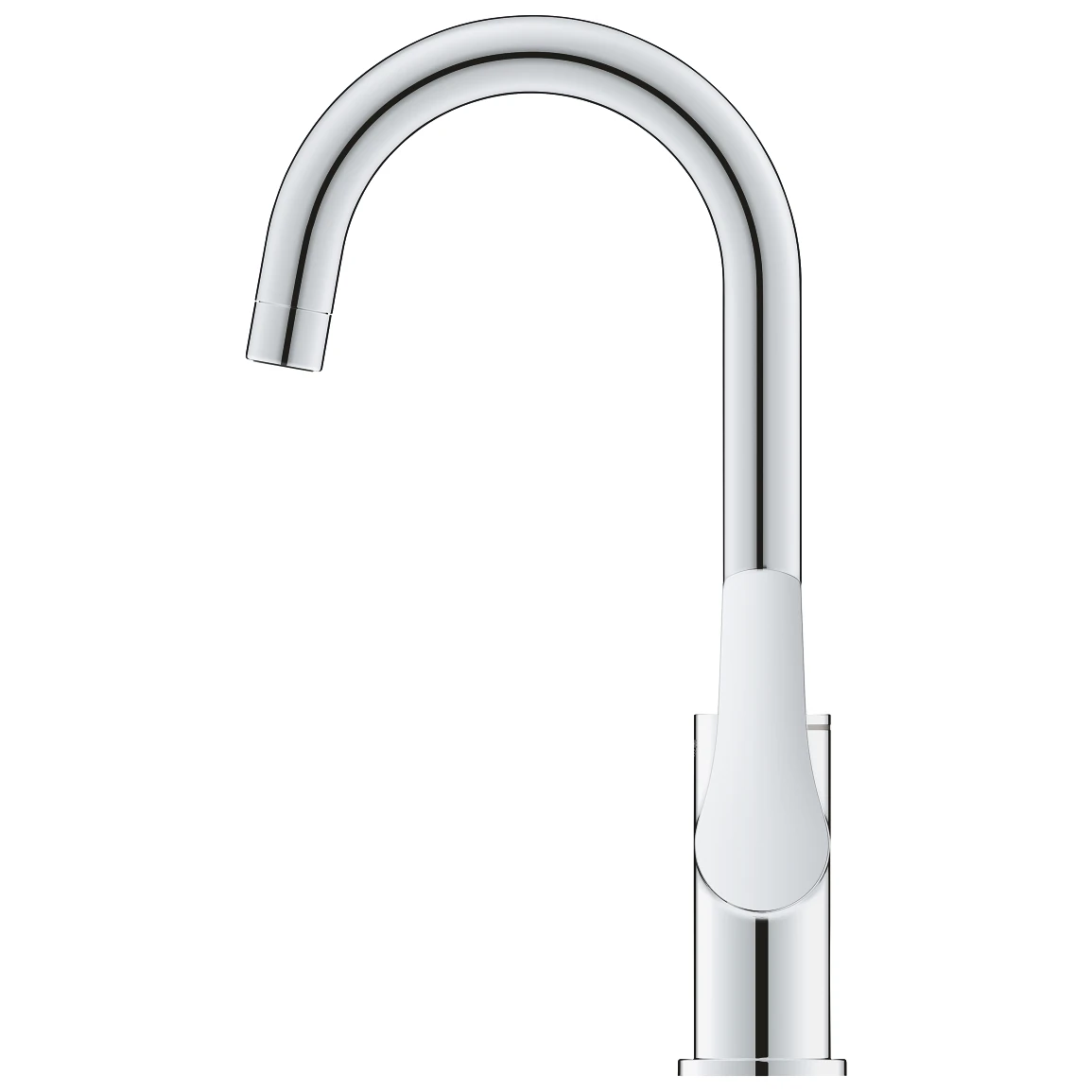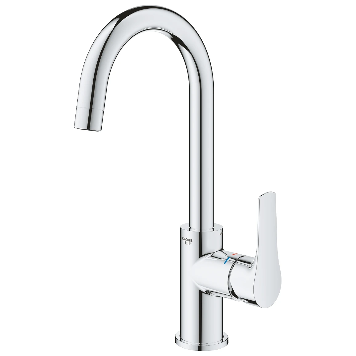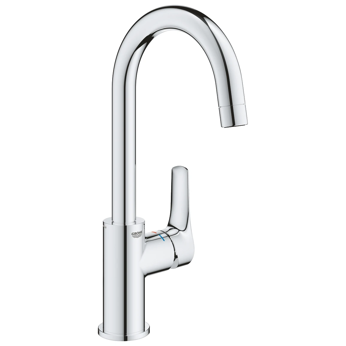 The Grohe Eurosmart basin mixer has a slim, contemporary profile and increased spout height for greater user comfort. This single-lever L-size basin tap is designed for single-hole installation, and features a useful push-open pop-up waste that opens and closes with a light press of a finger. Inside, the Grohe SilkMove ceramic cartridge offers durable, precise volume and temperature control via the solid metal lever. The integrated temperature limiter saves energy, while Grohe EcoJoy technology reduces water consumption to 5.7 litre/minute without compromising on performance. Finished in the dazzling but hard-wearing Grohe StarLight chrome finish, this bathroom tap will stay looking pristine for years to come.