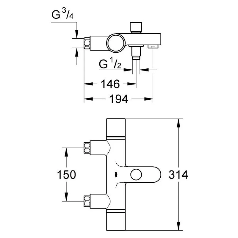 Grohtherm 1000 Cosmopolitan Thermostatic bath/shower mixer 3/4″