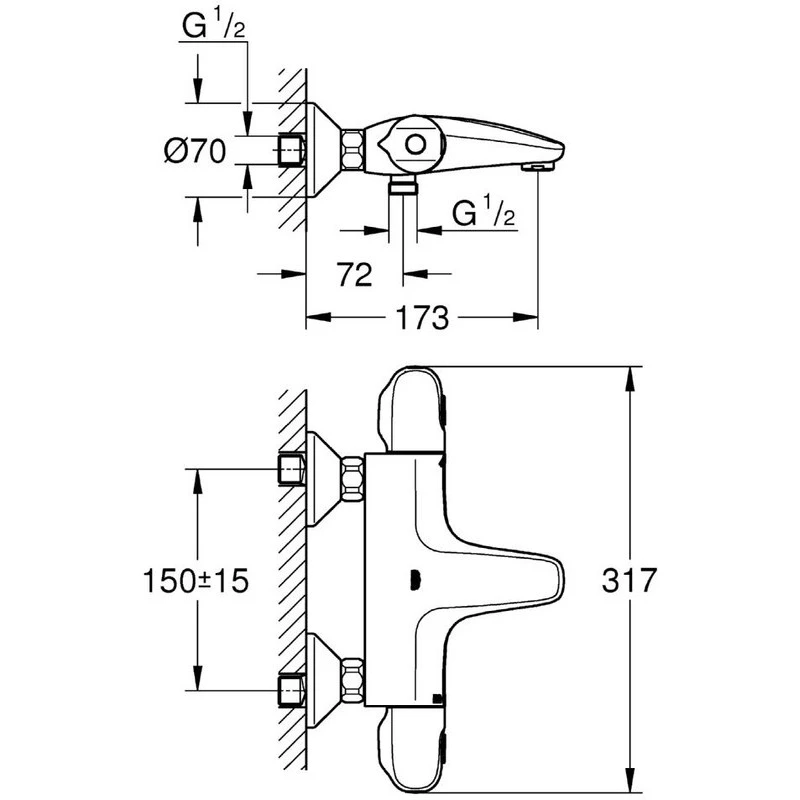 Grohtherm 1000 Thermostatic bath/shower mixer 1/2″