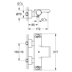 Grohtherm 2000 Thermostatic bath/shower mixer 1/2″
