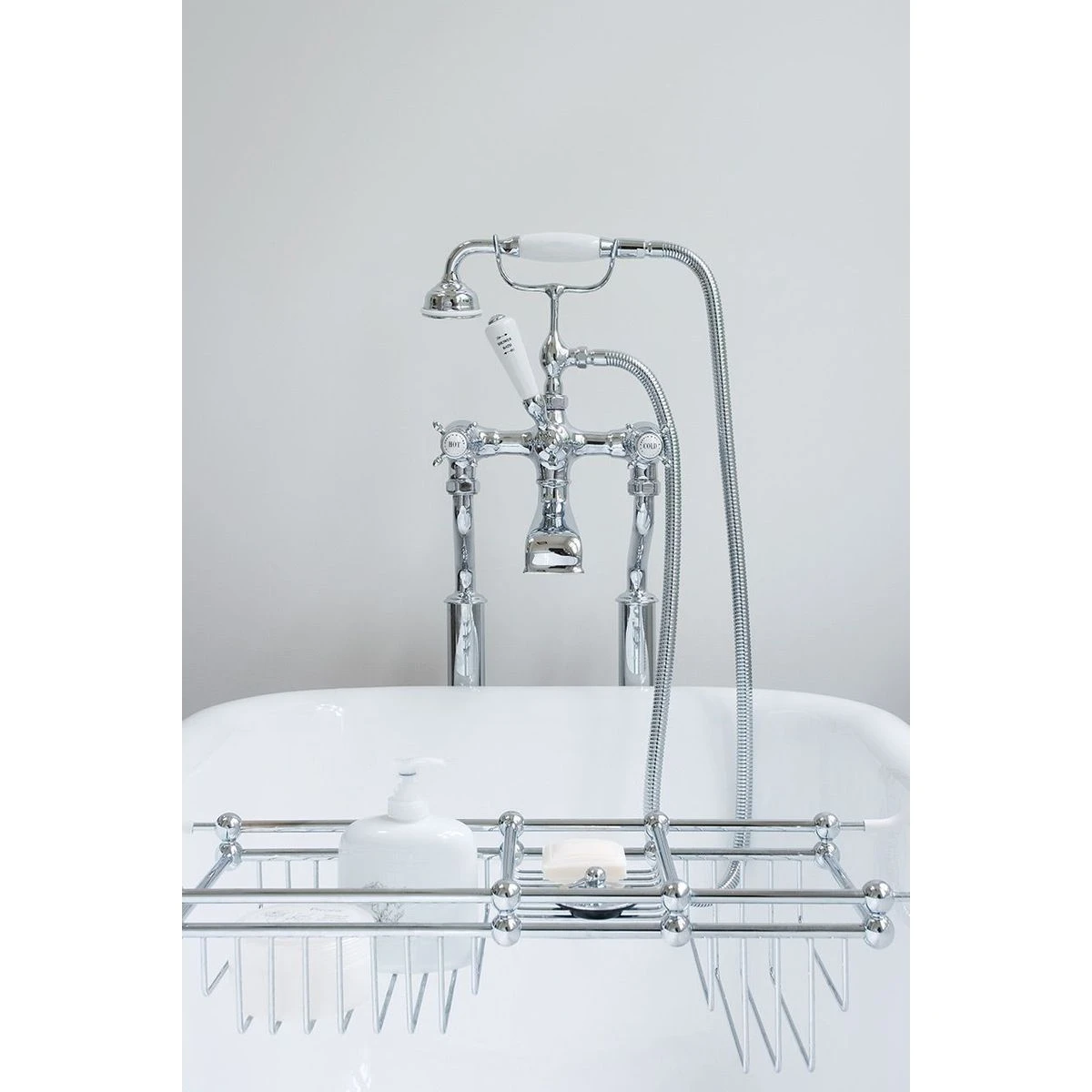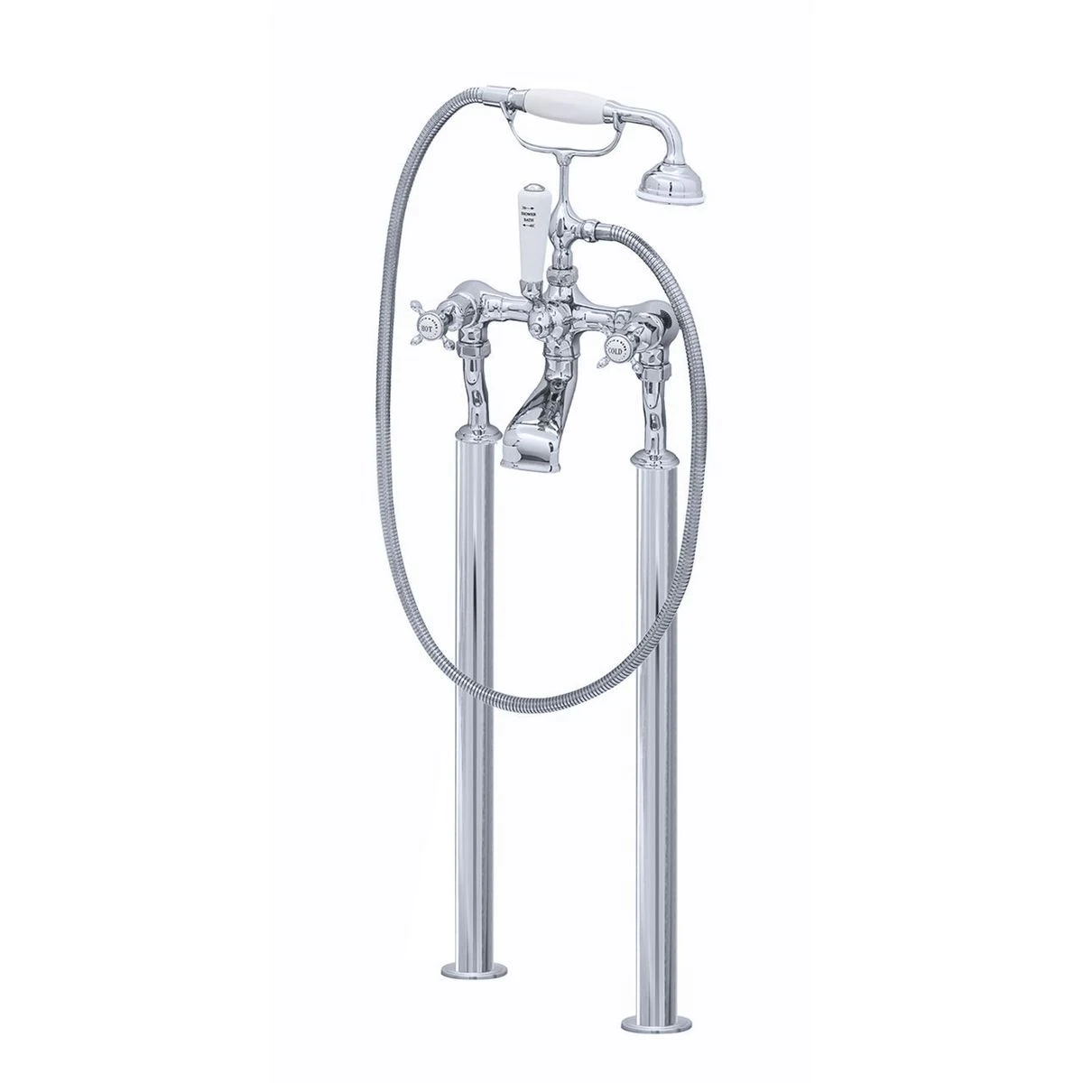 Traditional Bath Shower Mixer Tap with Extended Unions and Floor Legs, with Crosshead Handles, Chrome