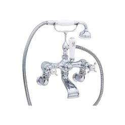 Traditional Bath Shower Mixer Tap and Wall Unions, Crosshead, Chrome