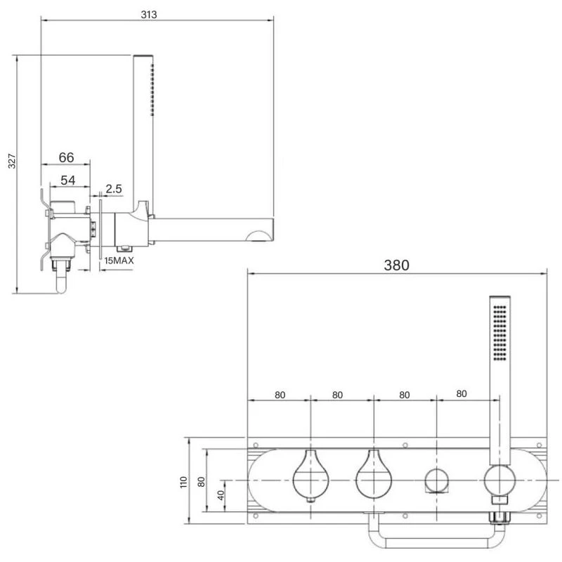 RAK Sorrento Thermostatic Concealed Dual Outlet Shower Valve with Handset and Bath Spout