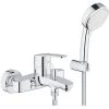 Roca Alfa wall mounted bath shower mixer with automatic diverter with retention, 1.75m flexible shower hose, handshower and swivel wall bracket