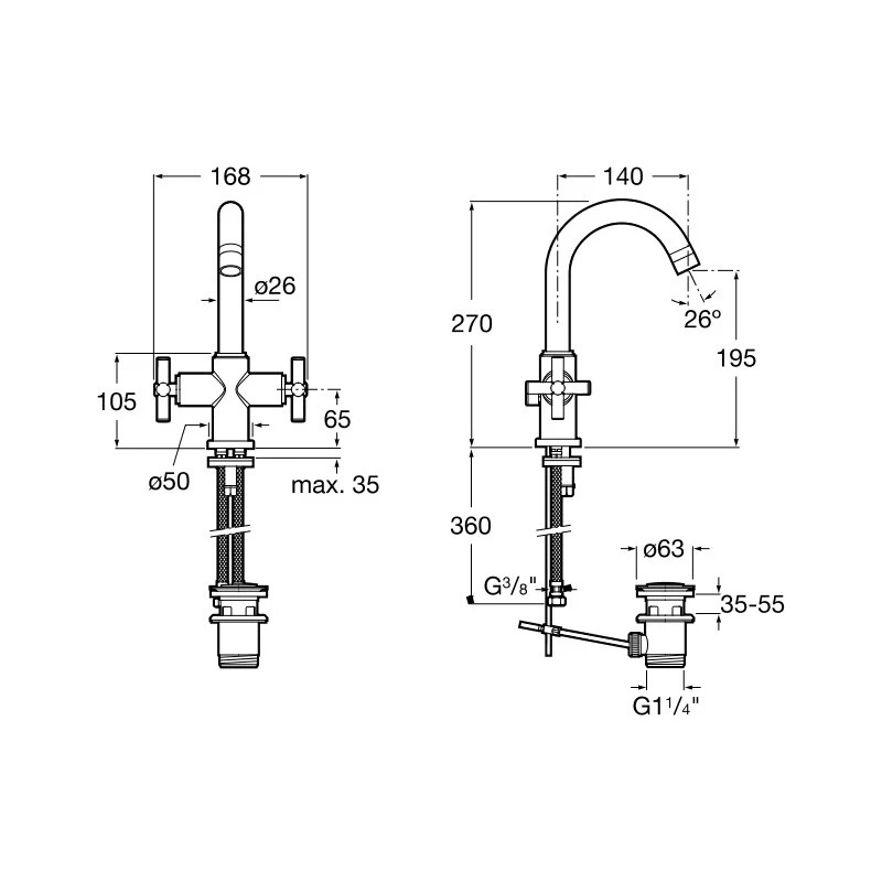 Loft Basin mixer with swivel spout and pop-up waste