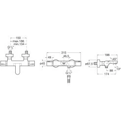 Roca T 1000 thermostatic wall mounted bath shower mixer with diverter flow regulator