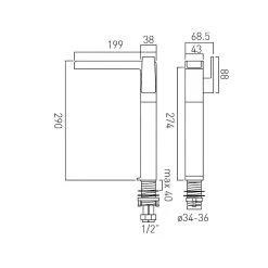 Minimum operating pressure 0.2 bar (Low water pressure)