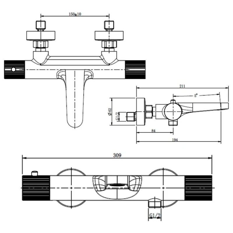 RAK Amalfi Thermostatic Wall Mounted Bath Shower Mixer