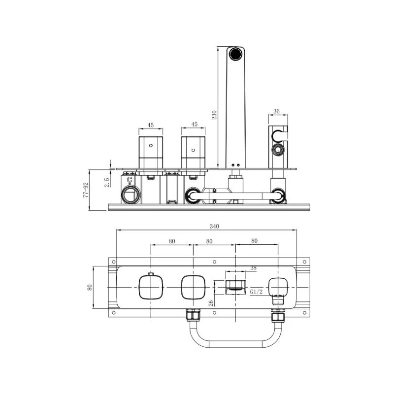 RAK Petit Square Wall Mounted Thermostatic Bath Shower Mixer